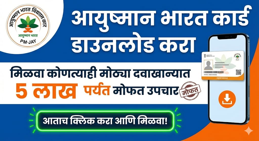 भारत सरकारच्या “आयुष्मान भारत – प्रधानमंत्री जन आरोग्य योजना (PMJAY)” अंतर्गत लाभार्थ्यांना मोफत आरोग्य सेवा मिळण्यासाठी गोल्डन कार्ड दिले जाते. …