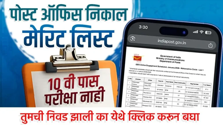 मित्रांनो, तुम्ही जर इंडियन पोस्ट ऑफिस भरतीसाठी (India Post Office Recruitment) ग्रामीण डाक सेवक (GDS), शाखा पोस्ट मास्टर (BPM) किंवा सहाय्यक शाखा पोस्ट मास्टर (ABPM) या पदांसाठी अर्ज केला असेल, तर तुमच्यासाठी एक अत्यंत आनंदाची बातमी आहे! भारतीय पोस्ट ऑफिस विभागाने एकूण 28,636 पदांसाठी तिसरी गुणवत्ता यादी (Merit List) अधिकृतपणे त्यांच्या वेबसाईटवर प्रसिद्ध केली आहे. ज्या उमेदवारांची निवड या यादीमध्ये झाली आहे, त्यांचे अभिनंदन! तर ज्यांनी अजूनही यादी तपासली नाही, त्यांनी अजिबात वेळ न घालवता लगेच आपले नाव तपासावे.