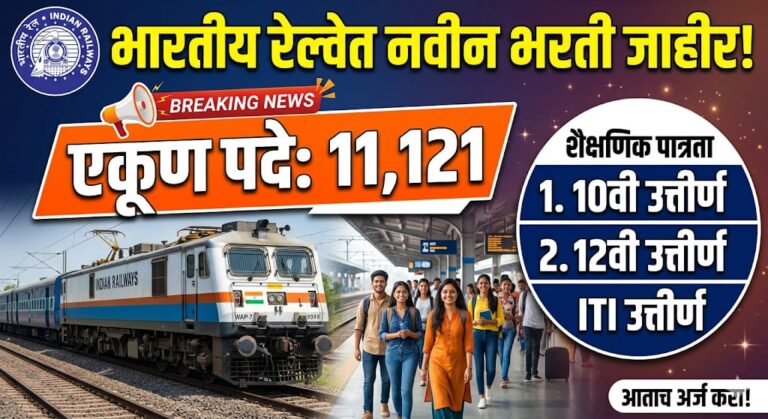 नमस्कार मित्रांनो, सरकारी नोकरीच्या शोधात असलेल्या आपल्या सर्व तरुण मित्रांसाठी एक अत्यंत आनंदाची बातमी आहे! भारतीय रेल्वेने पुन्हा एकदा नोकरीच्या अनेक संधी घेऊन आले आहे. Centralised Employment Notification (CEN) No. 01/2026 अंतर्गत Railway Recruitment Boards (RRBs) द्वारे Assistant Loco Pilot (ALP) पदांसाठी तब्बल 11,127 जागांची मेगा भरती जाहीर झाली आहे. ही केवळ एक भरती नाही, तर अनेकांचं रेल्वेत नोकरी करण्याचं स्वप्न पूर्ण करण्याची ही एक सुवर्णसंधी आहे.